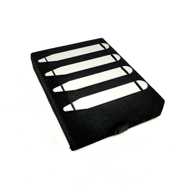 This set of 4 collar stays are made of 304 stainless steel. With your brand laser engraved, then put into a custom printed box. Premium yet budget friendly option for a giveaway gift.