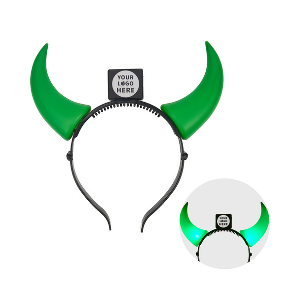 Feeling a little devilish? Show your playful side with this Light Up Devil Horn Headband. Especially fun at Halloween and perfect for wicked parties. The LED Devil Horn Headband is made of environmentally friendly sturdy high quality plastic that bends without being easily damaged. Each Light Up Devil Horn Headband has two flashing LED lights, one in each horn to shine brightly in the dark. Each set comes with batteries preinstalled which are also easily replaceable. Can last up to 48 hours making it perfect to show off at your next party. Available in numerous color options to suit any occasion and each headband can be easily customized with your logo making it especially perfect for your next company party or social event.